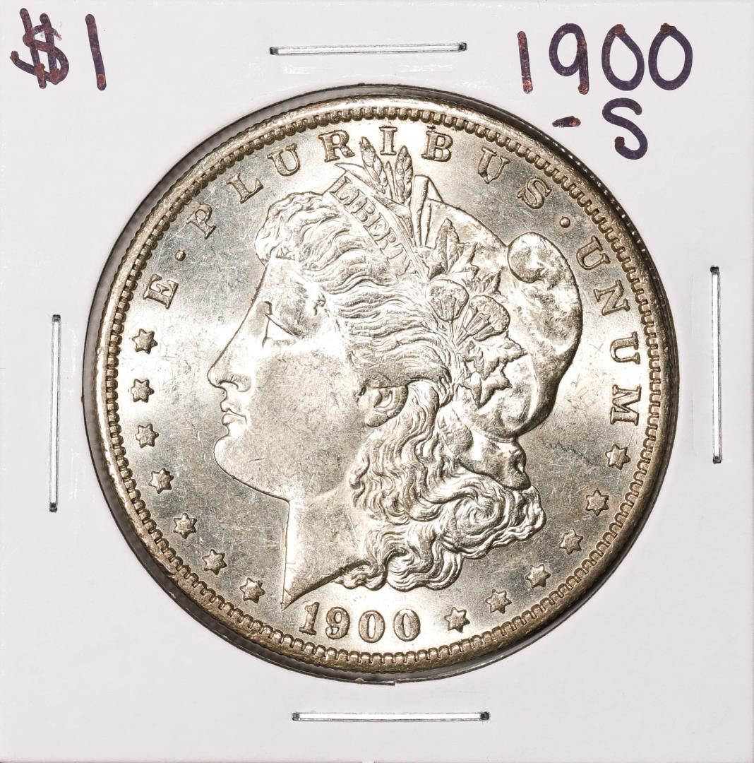 One 1900-S $1 Morgan Silver Dollar Coin.