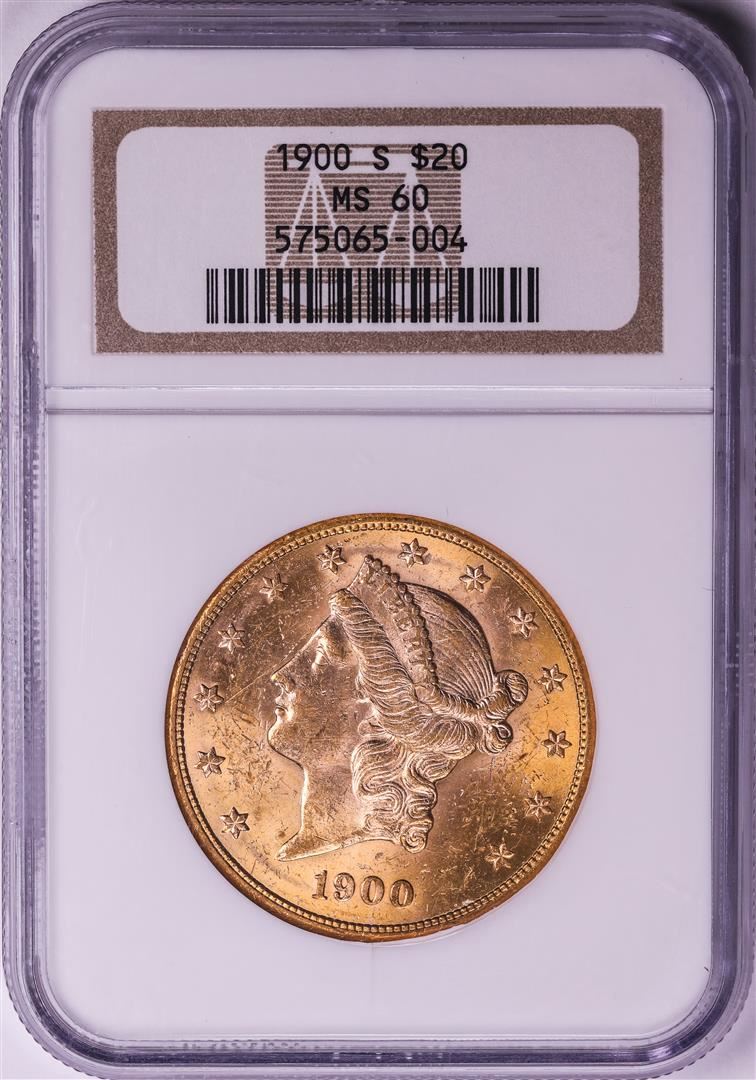 One 1900-S $20 Liberty Head Double Eagle Gold Coin NGC MS60. NGC Certified.