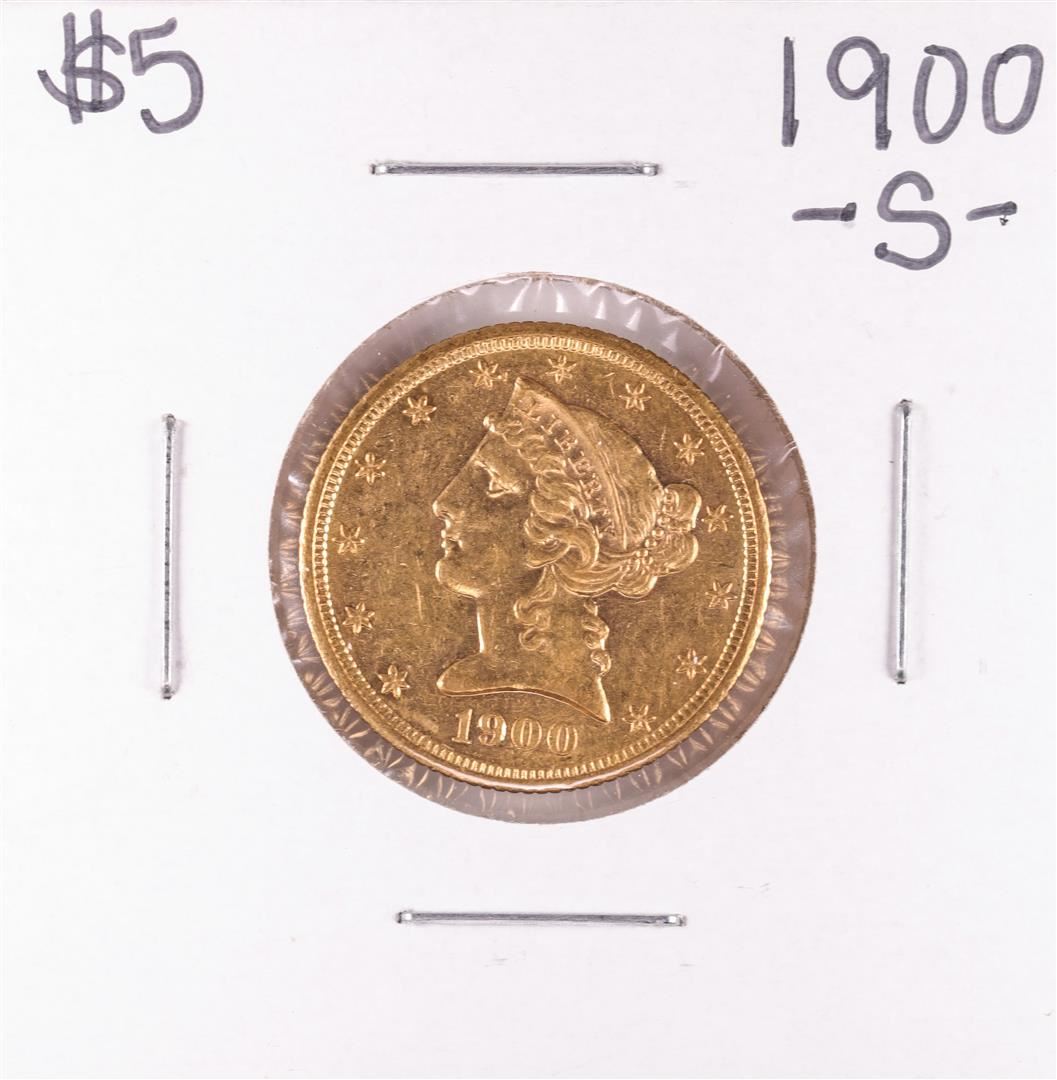 One 1900-S $5 Liberty Head Half Eagle Gold Coin.