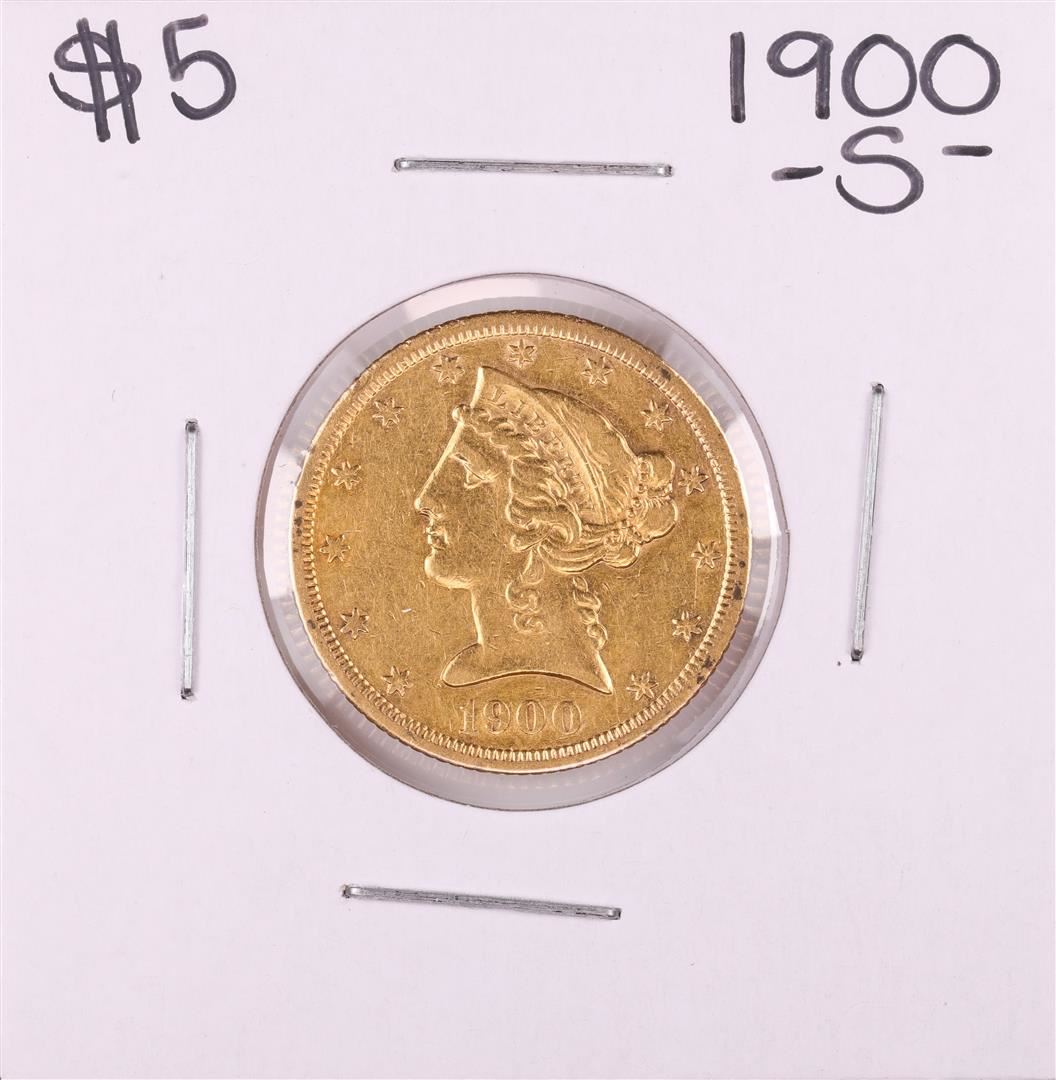 One 1900-S $5 Liberty Head Half Eagle Gold Coin.