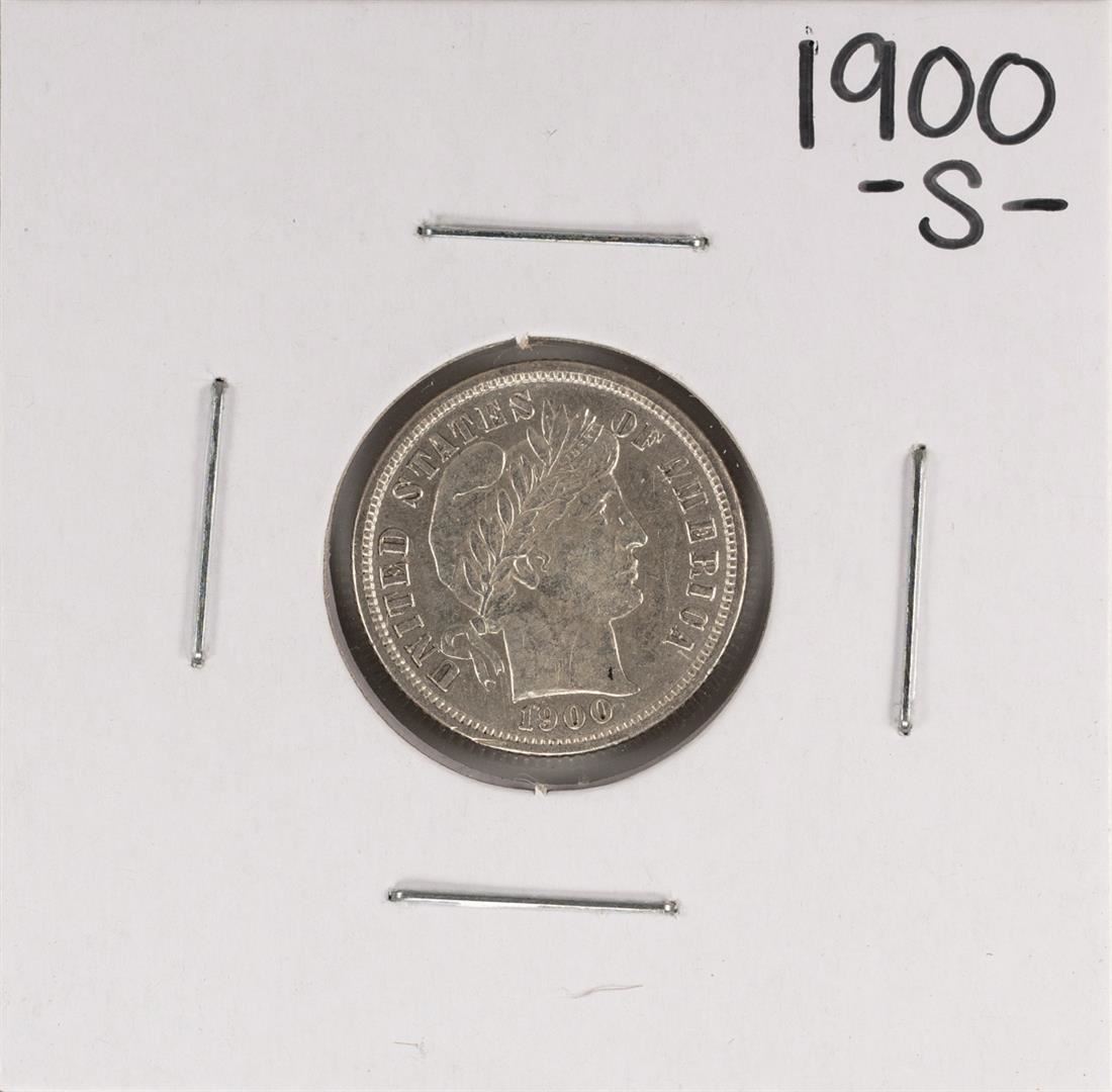 One 1900-S Barber Dime Coin.