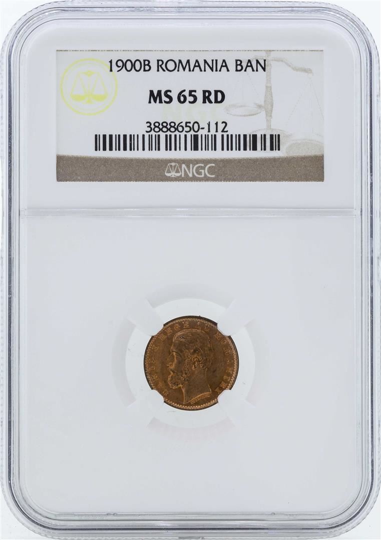 One 1900B Romania Ban Coin NGC MS65RD. NGC Certified.