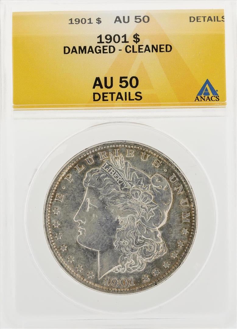 One 1901 $1 Morgan Silver Dollar Coin Damaged Cleaned ANACS AU50 Details. ANACS Certified.