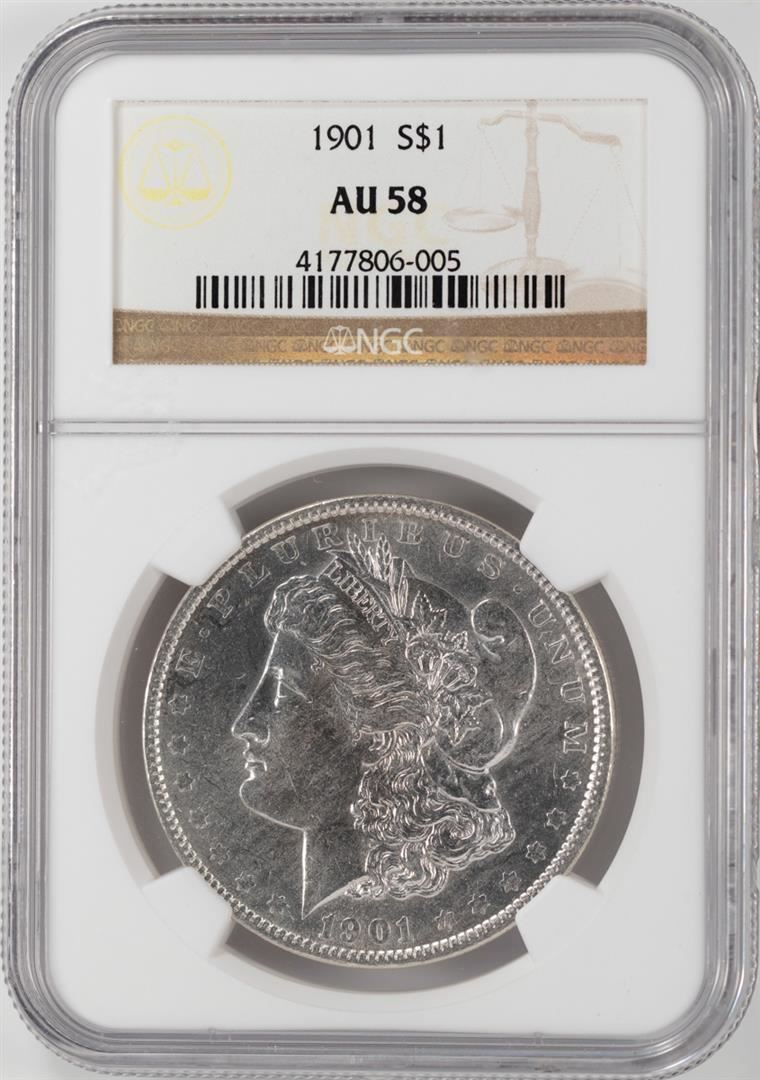 One 1901 $1 Morgan Silver Dollar Coin NGC AU58. NGC Certified.