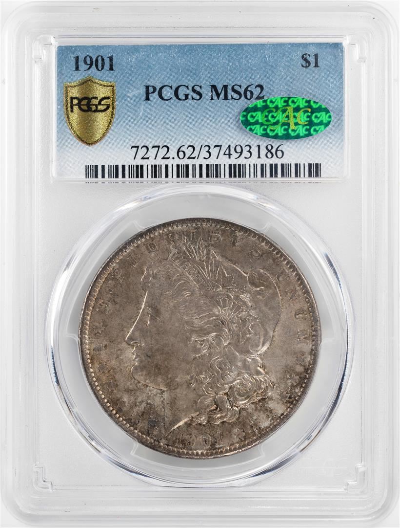 One 1901 $1 Morgan Silver Dollar Coin PCGS MS62 CAC. PCGS Graded.