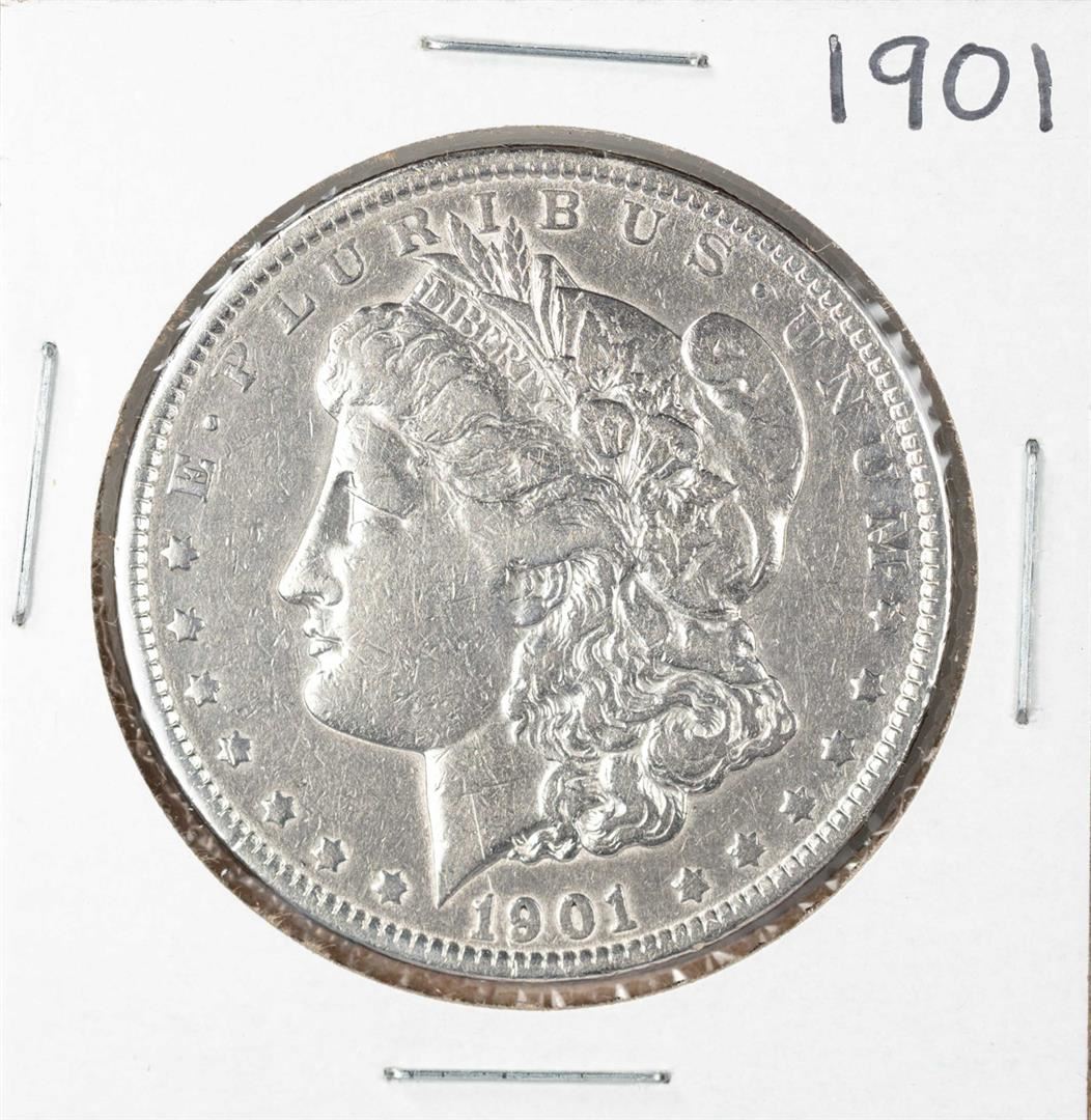 One 1901 $1 Morgan Silver Dollar Coin.