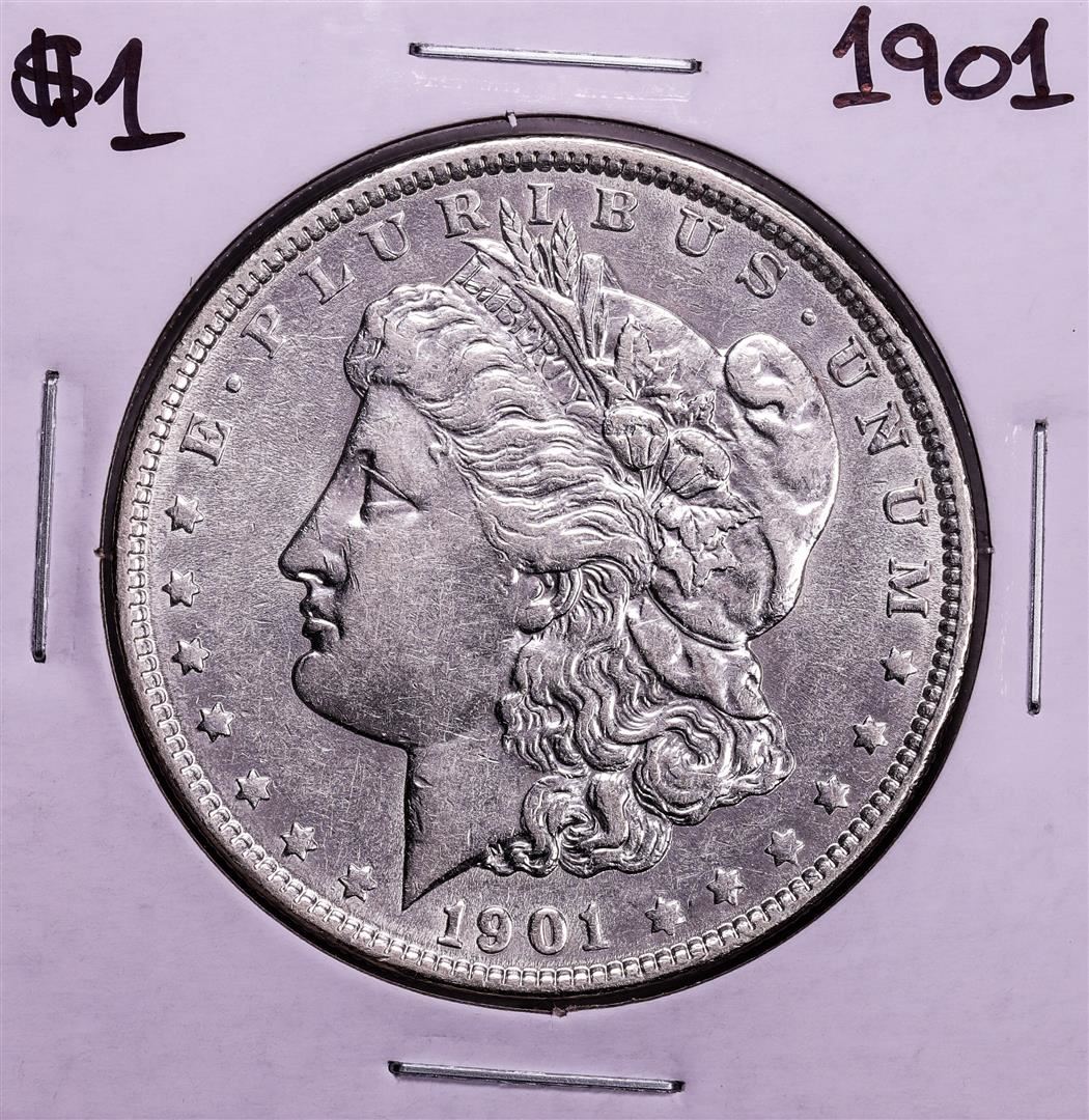 One 1901 $1 Morgan Silver Dollar Coin.