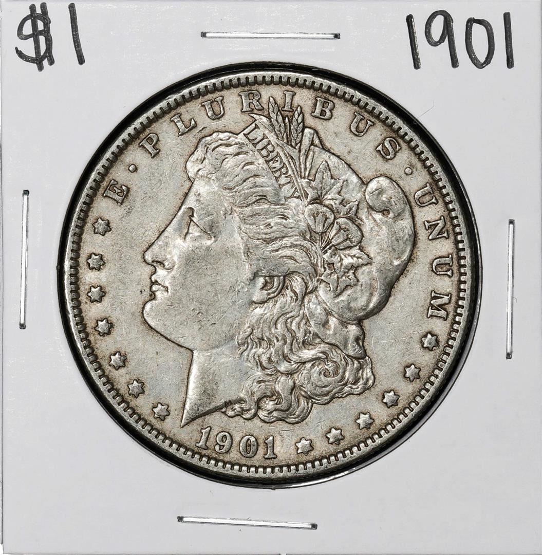 One 1901 $1 Morgan Silver Dollar Coin.