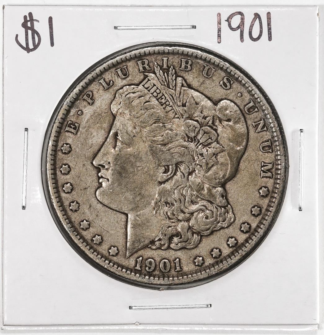 One 1901 $1 Morgan Silver Dollar Coin.