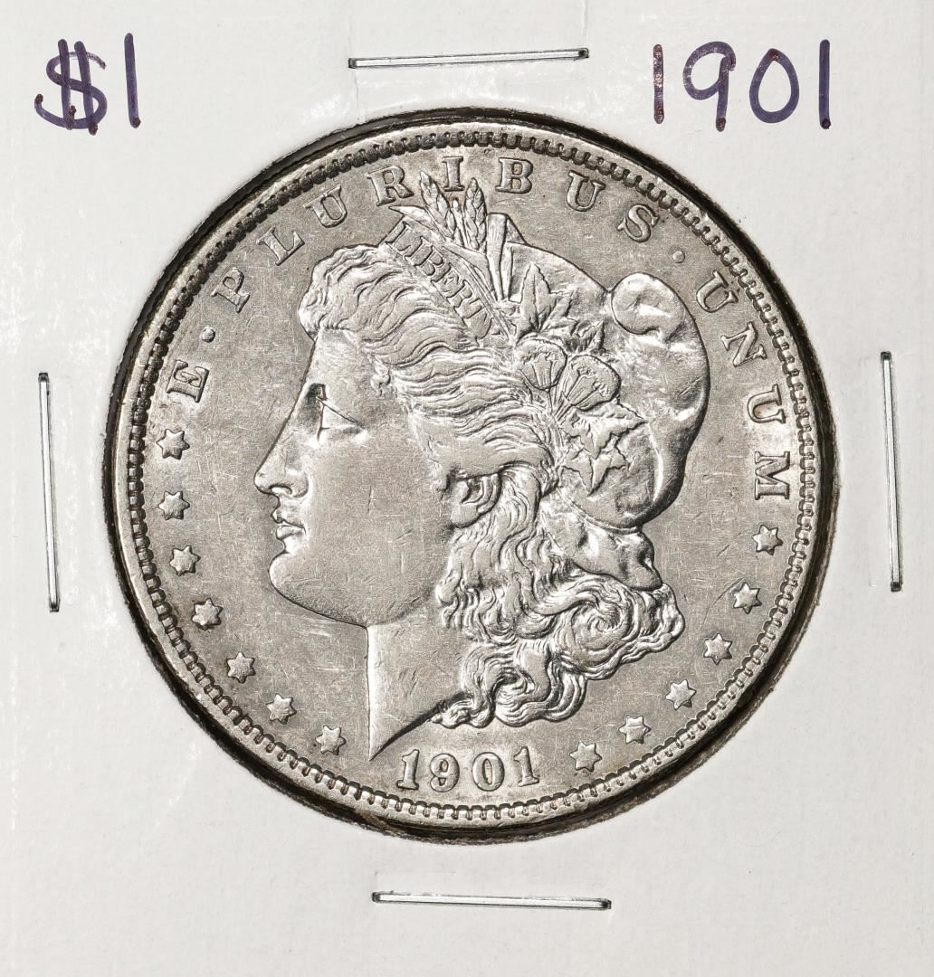 One 1901 $1 Morgan Silver Dollar Coin.