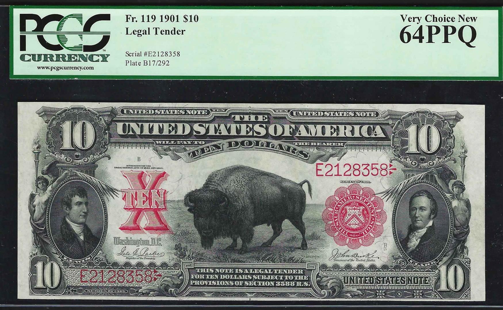 One 1901 $10 Bison Legal Tender Note Fr.119 PCGS Very Choice New 64PPQ. PCGS Graded.