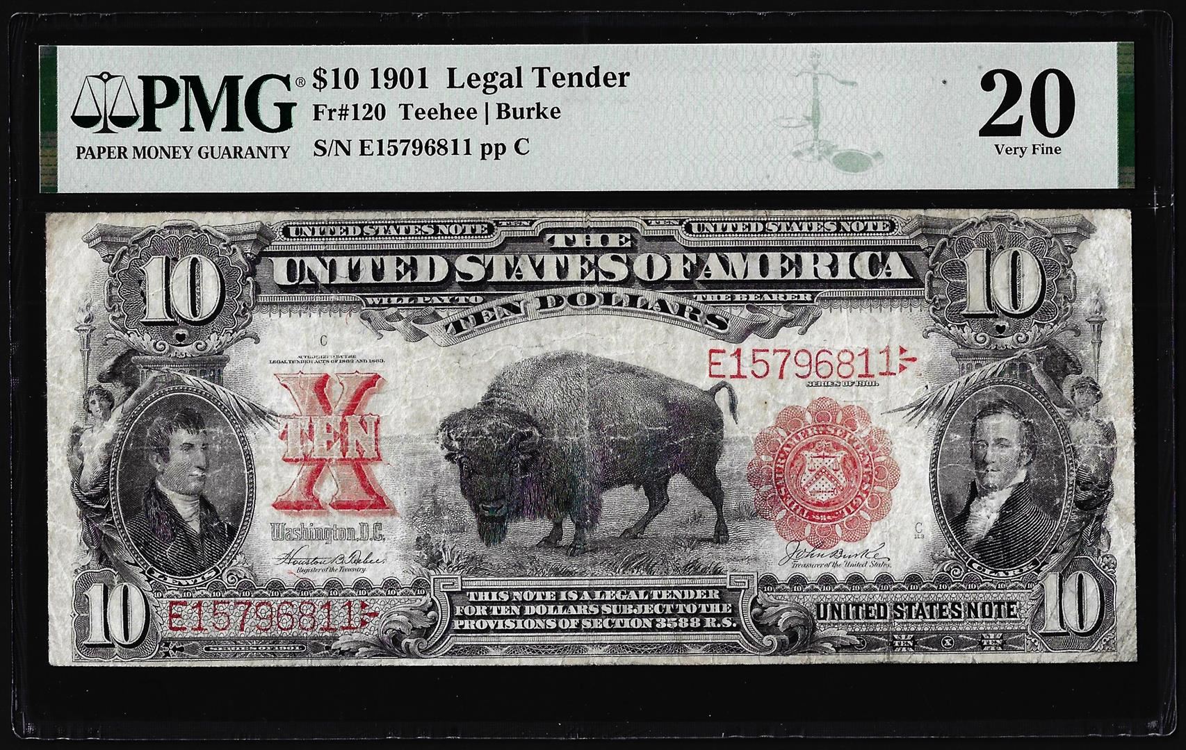 One 1901 $10 Bison Legal Tender Note Fr.120 PMG Very Fine 20. PMG Certified.