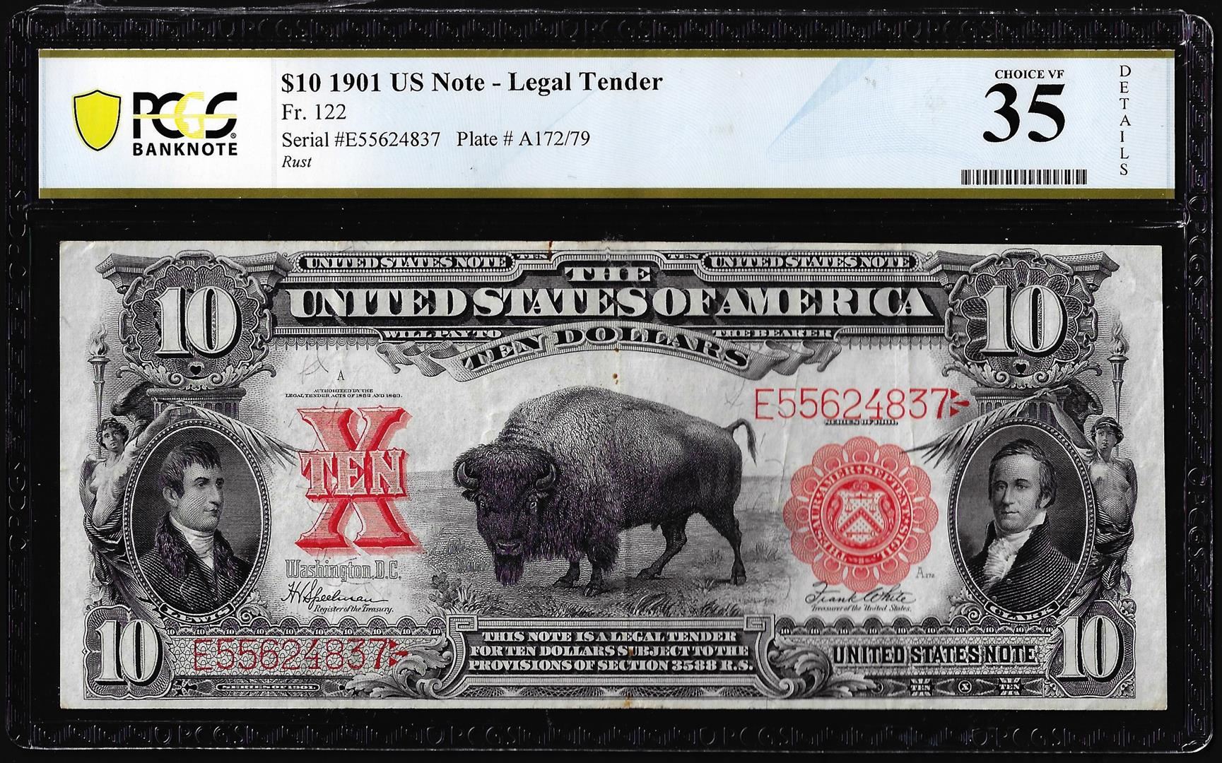 One 1901 $10 Bison Legal Tender Note Fr. 122 PCGS Choice Very Fine 35 Details. PCGS Graded.