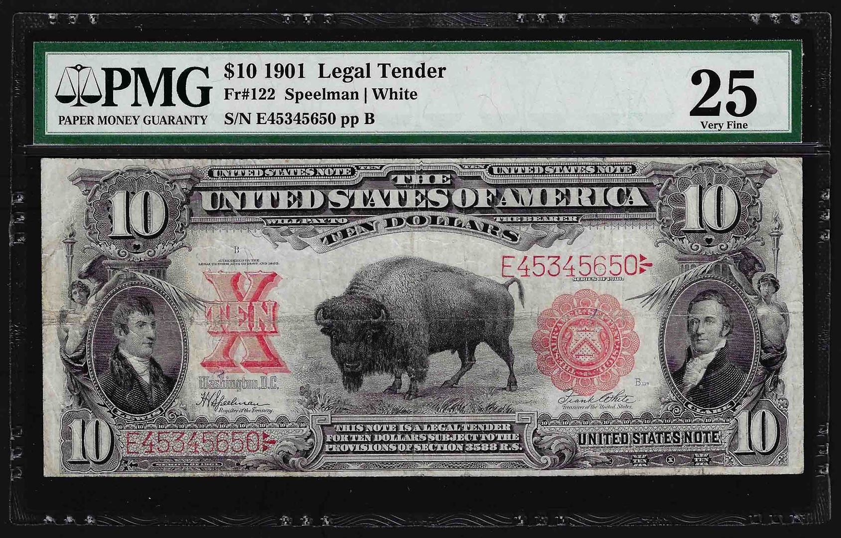 One 1901 $10 Bison Legal Tender Note PMG VF25. PMG Certified.