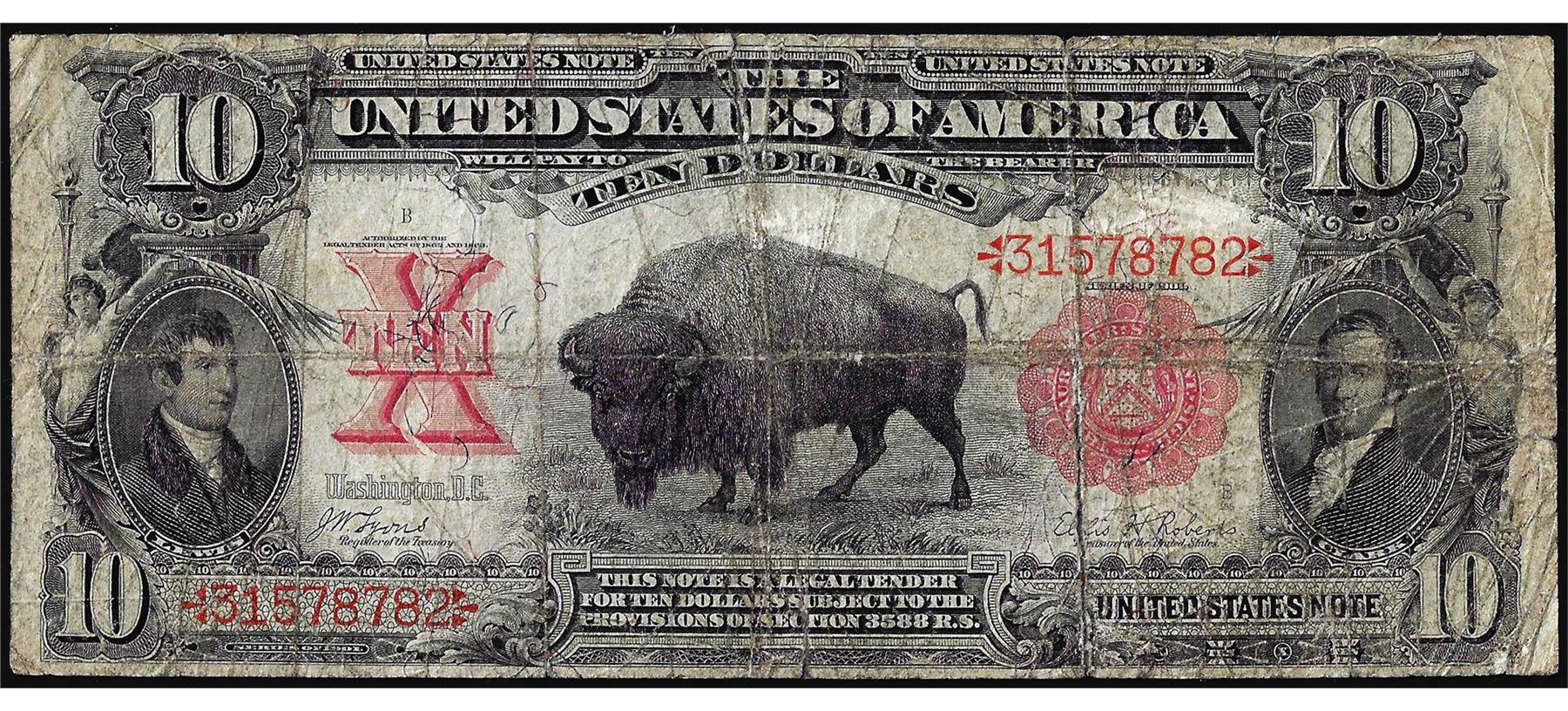 One 1901 $10 Bison Legal Tender Note - Tape Repair.