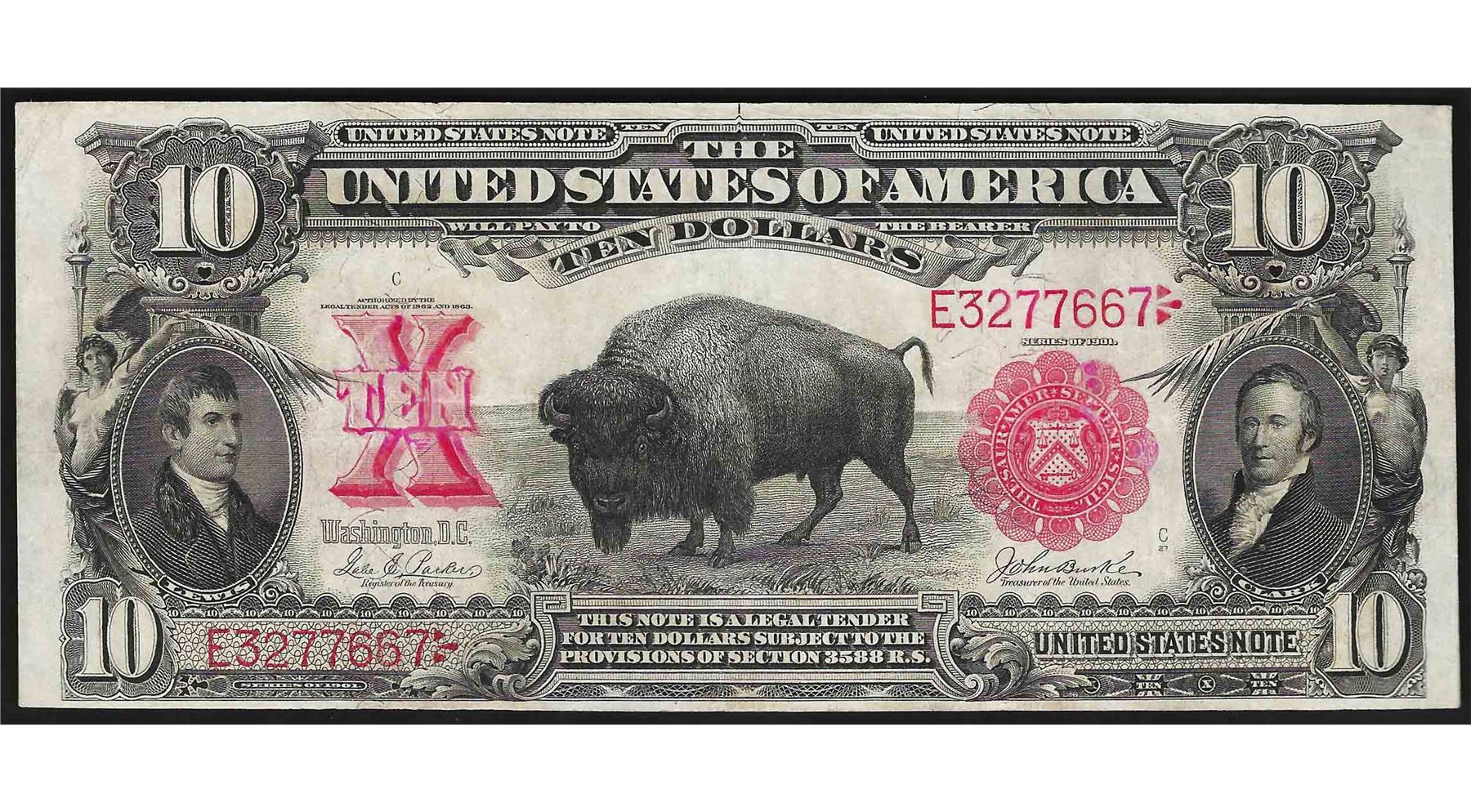 One 1901 $10 Bison Legal Tender Note.