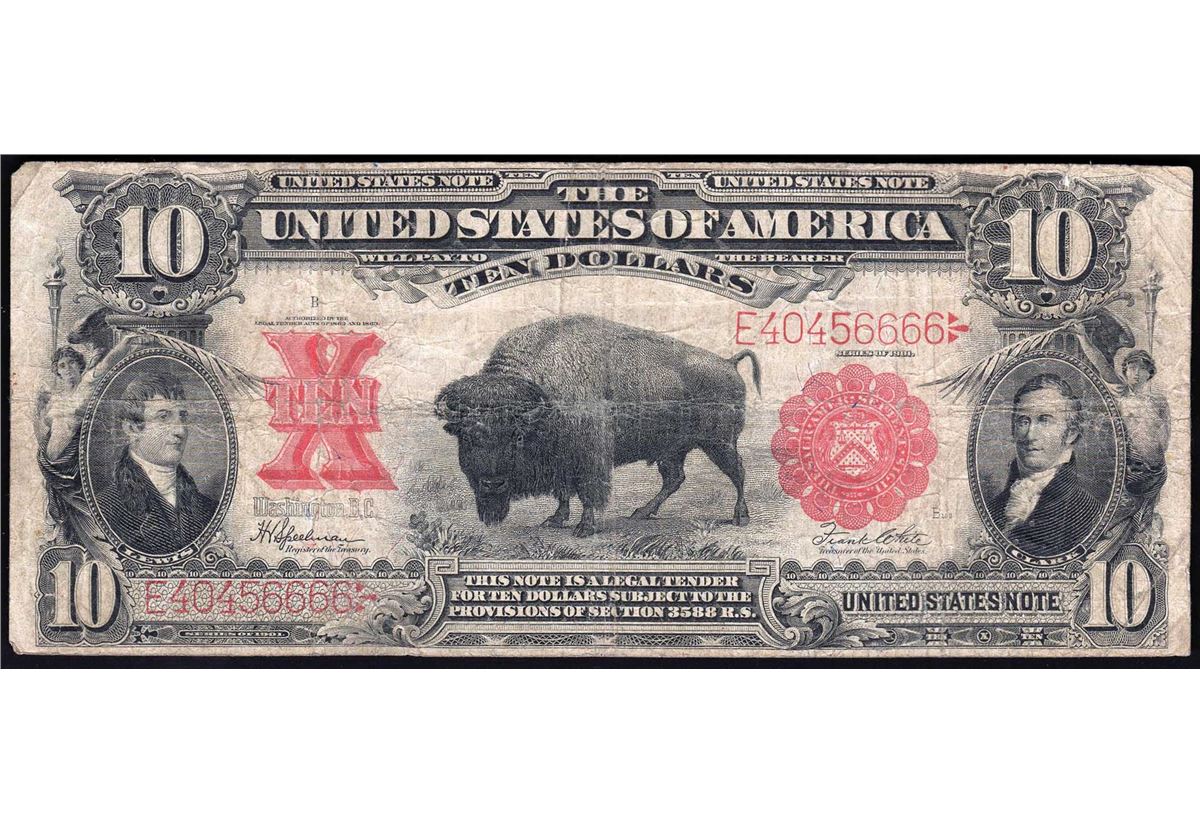 One 1901 $10 Bison Legal Tender U.S. Currency Note.