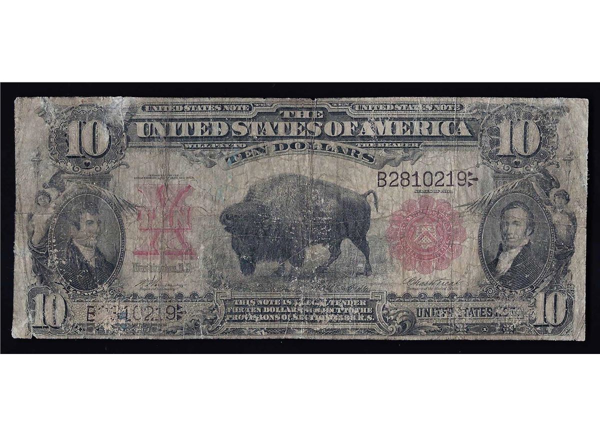 One 1901 $10 Bison Legal Tender U.S. Currency Note.