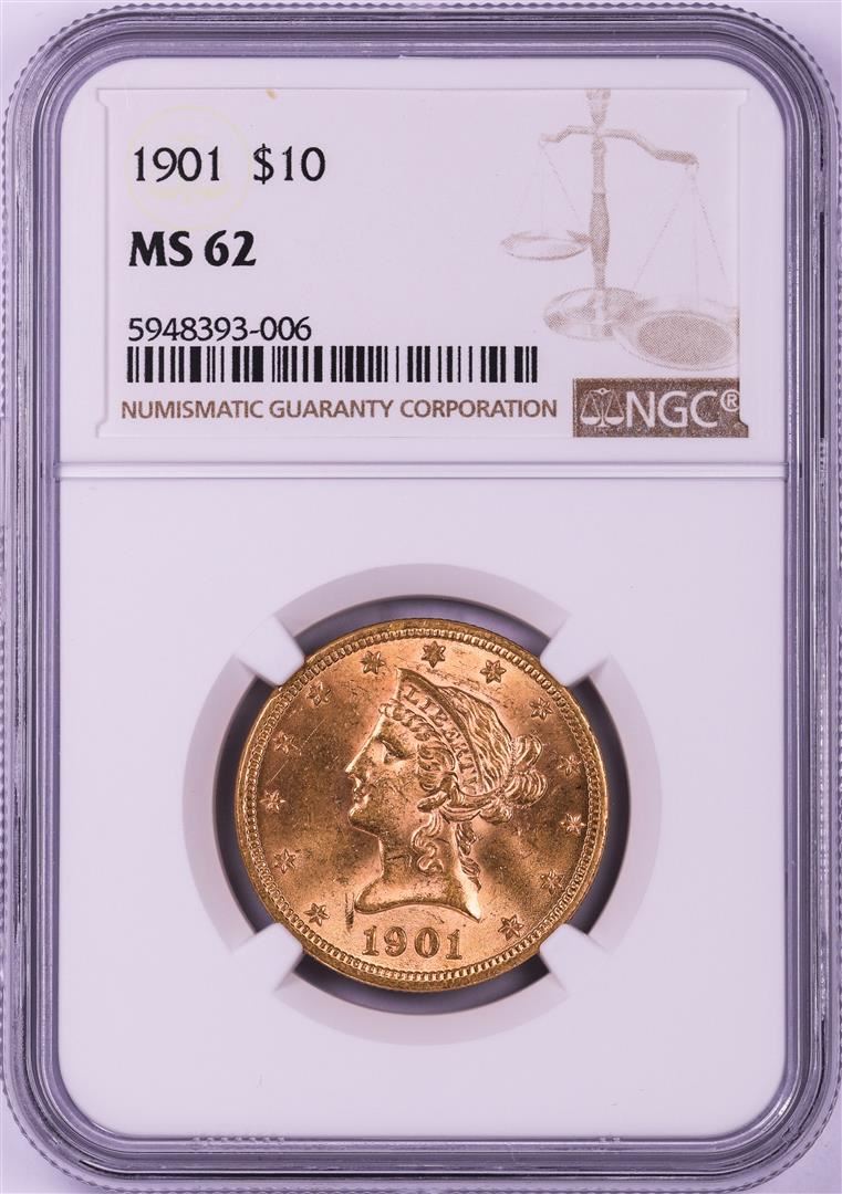 One 1901 $10 Liberty Head Eagle Gold Coin NGC MS62.