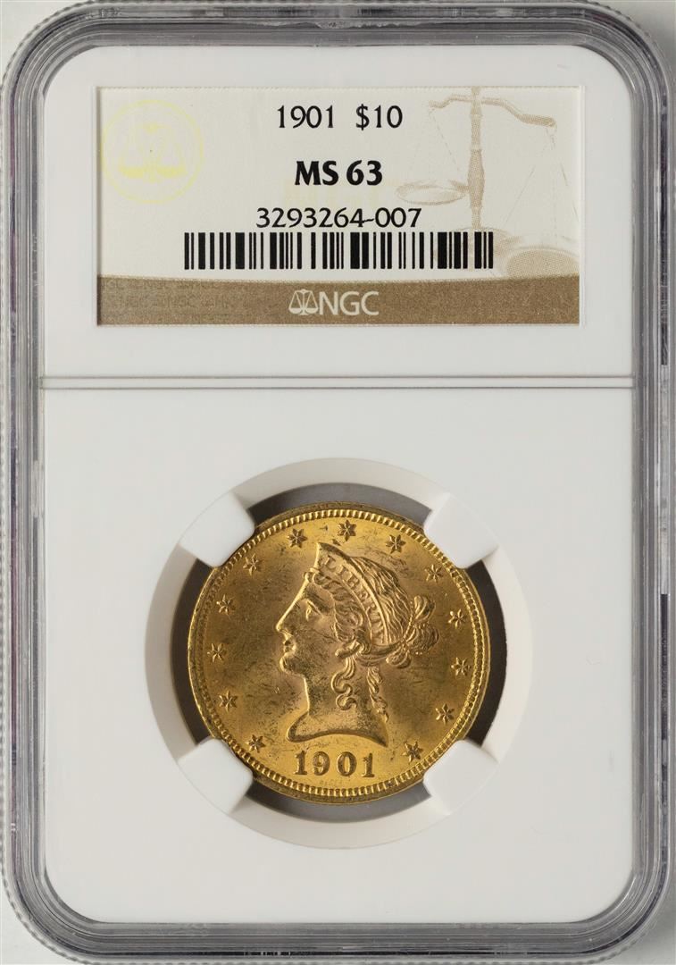 One 1901 $10 Liberty Head Eagle Gold Coin NGC MS63. NGC Certified.