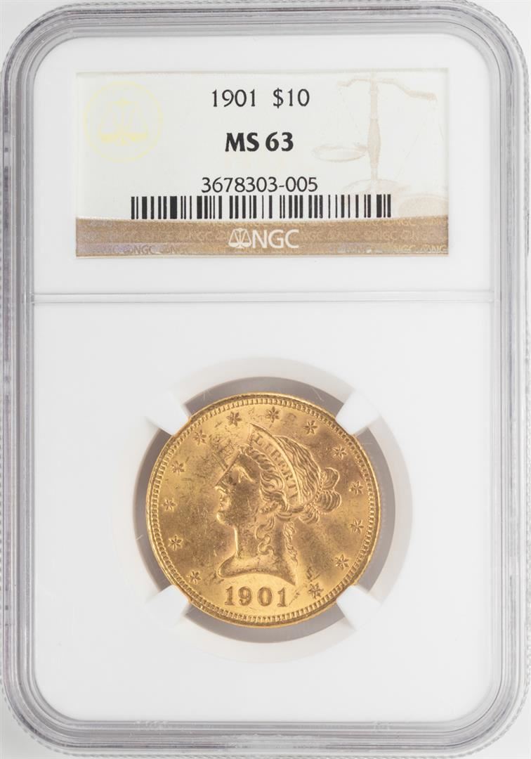 One 1901 $10 Liberty Head Eagle Gold Coin NGC MS63. NGC Certified.