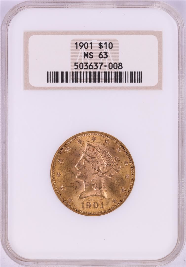 One 1901 $10 Liberty Head Eagle Gold Coin NGC MS63. NGC Certified.