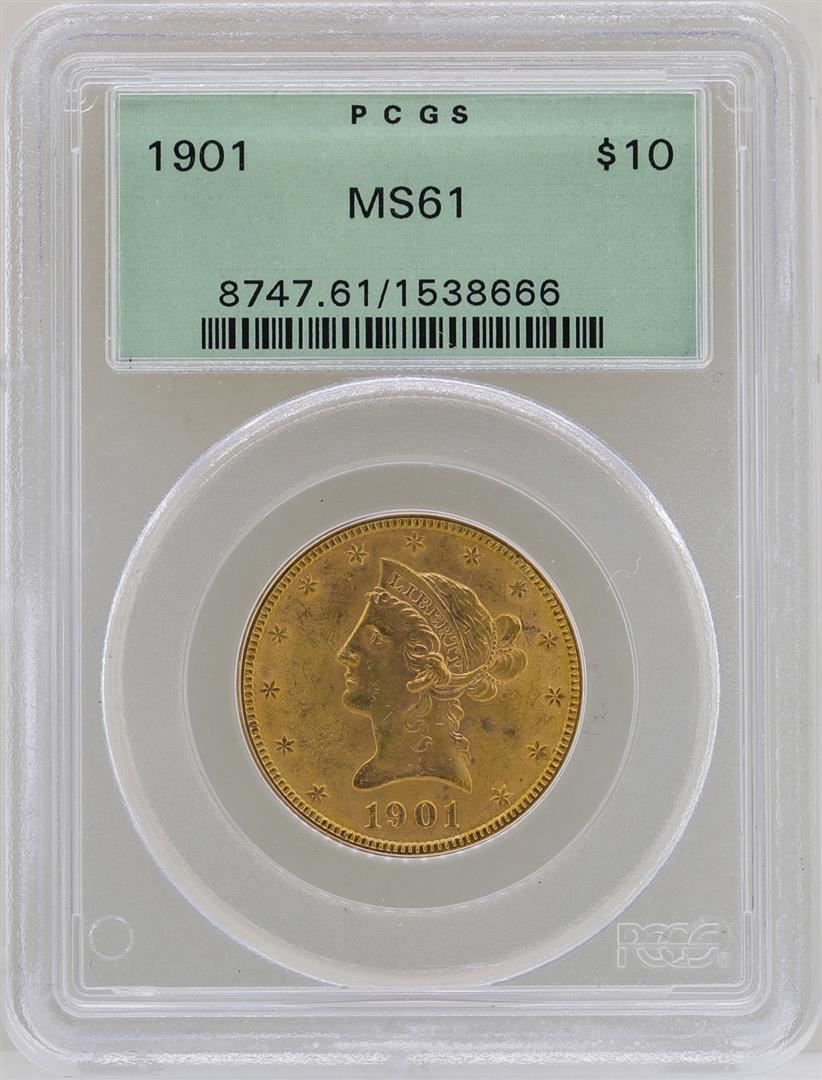 One 1901 $10 Liberty Head Eagle Gold Coin PCGS MS61. PCGS Graded.