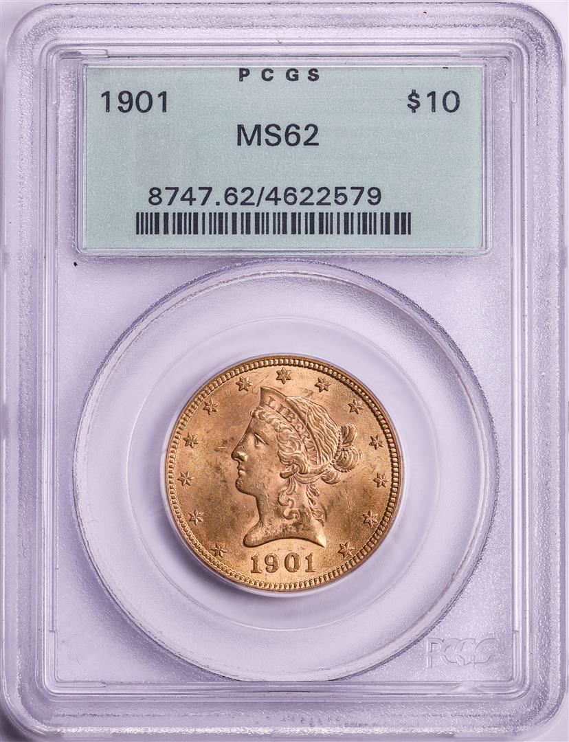 One 1901 $10 Liberty Head Eagle Gold Coin PCGS MS62 Old Green Holder. PCGS Graded.