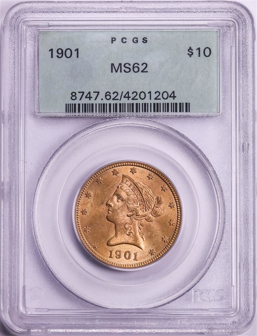 One 1901 $10 Liberty Head Eagle Gold Coin PCGS MS62 Old Green Holder. PCGS Graded.