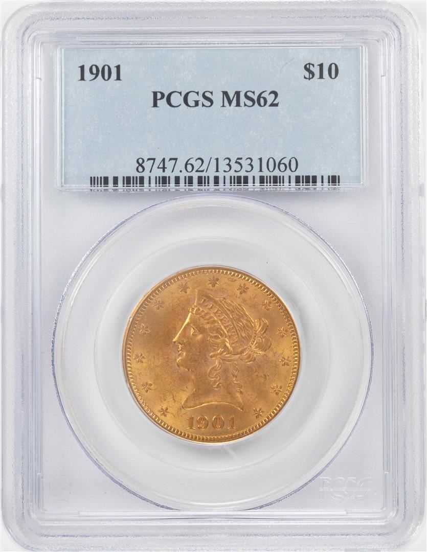 One 1901 $10 Liberty Head Eagle Gold Coin PCGS MS62. PCGS Graded.