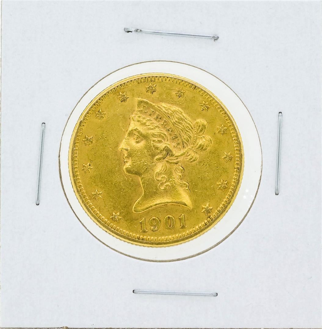 One 1901 $10 Liberty Head Eagle Gold Coin.