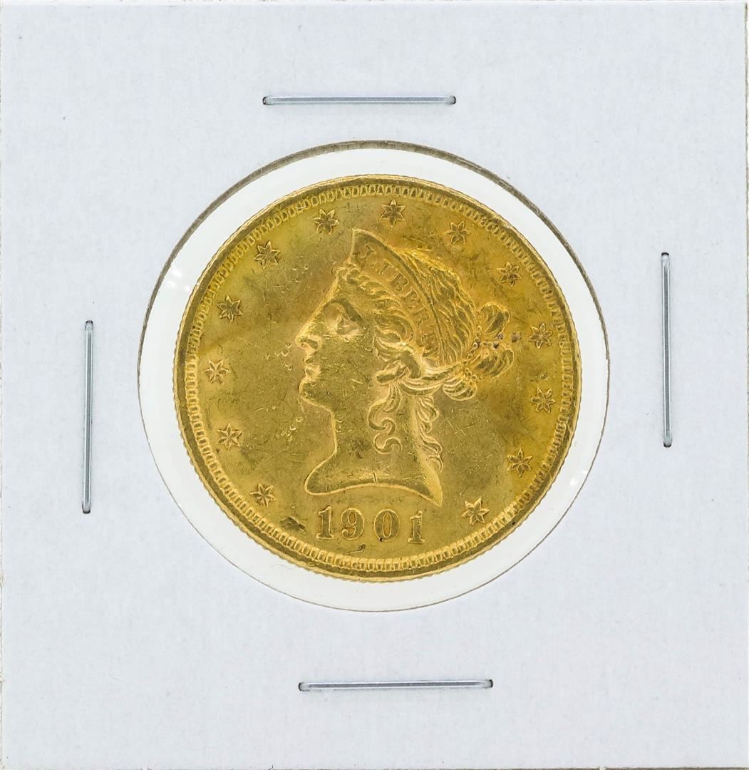 One 1901 $10 Liberty Head Eagle Gold Coin.
