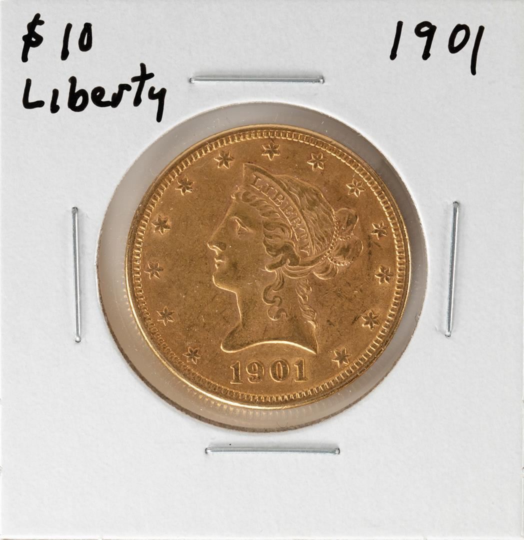 One 1901 $10 Liberty Head Eagle Gold Coin.
