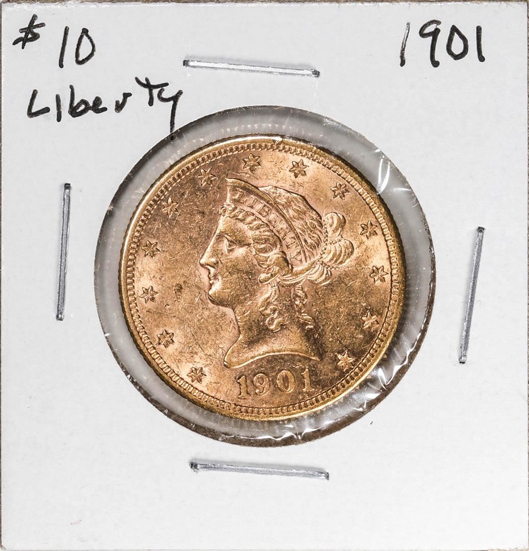 One 1901 $10 Liberty Head Eagle Gold Coin.