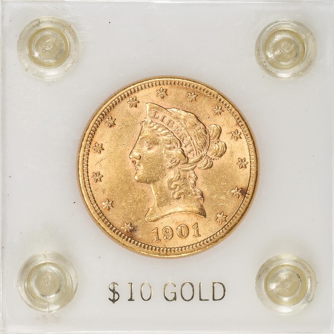 One 1901 $10 Liberty Head Eagle Gold Coin.