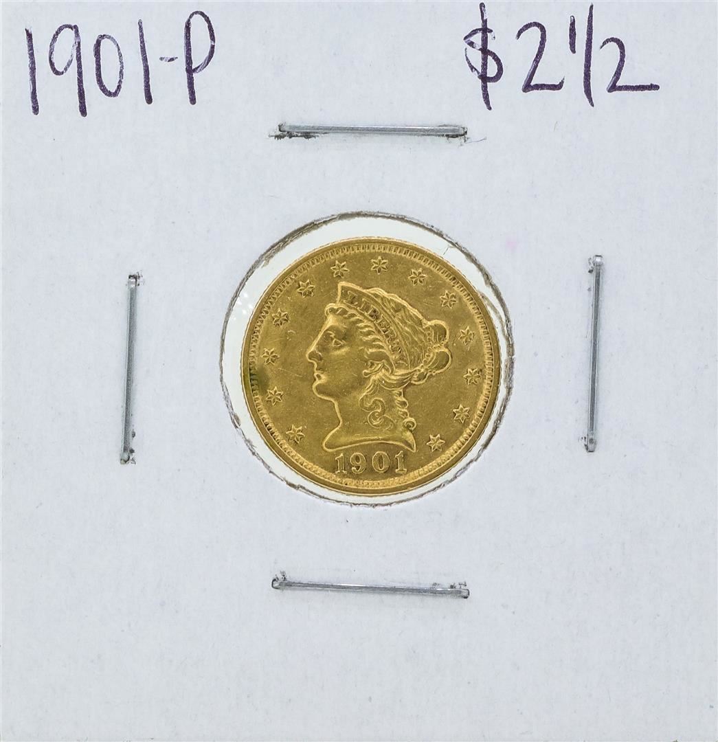 One 1901 $2 1/2 Liberty Head Quarter Eagle Gold Coin.