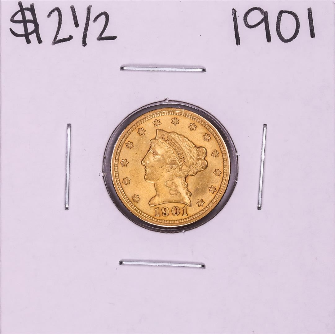 One 1901 $2 1/2 Liberty Head Quarter Eagle Gold Coin.