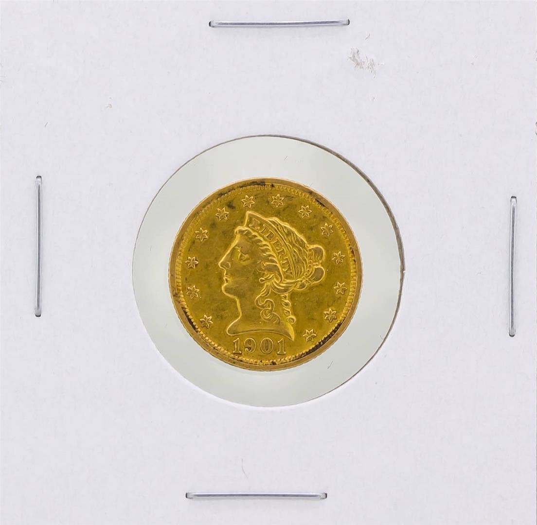 One 1901 $2.5 Liberty Head Quarter Eagle Gold Coin.