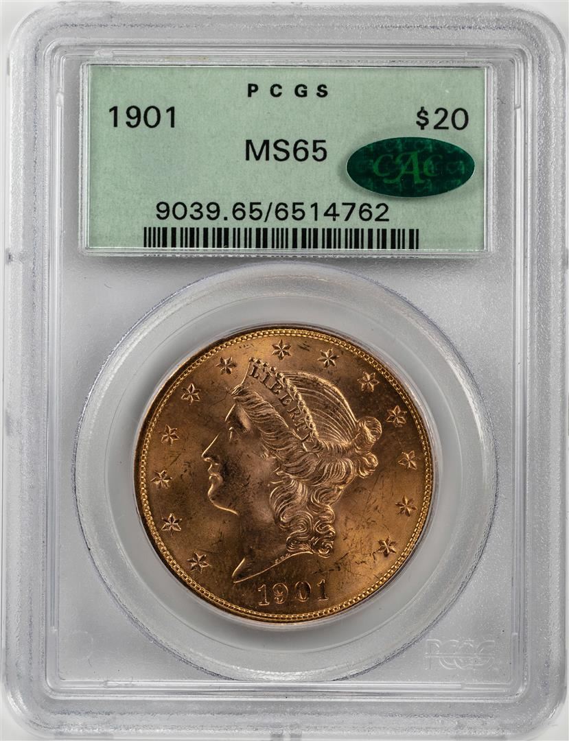 One 1901 $20 Liberty Head Double Eagle Gold Coin PCGS MS65 CAC. PCGS Graded.