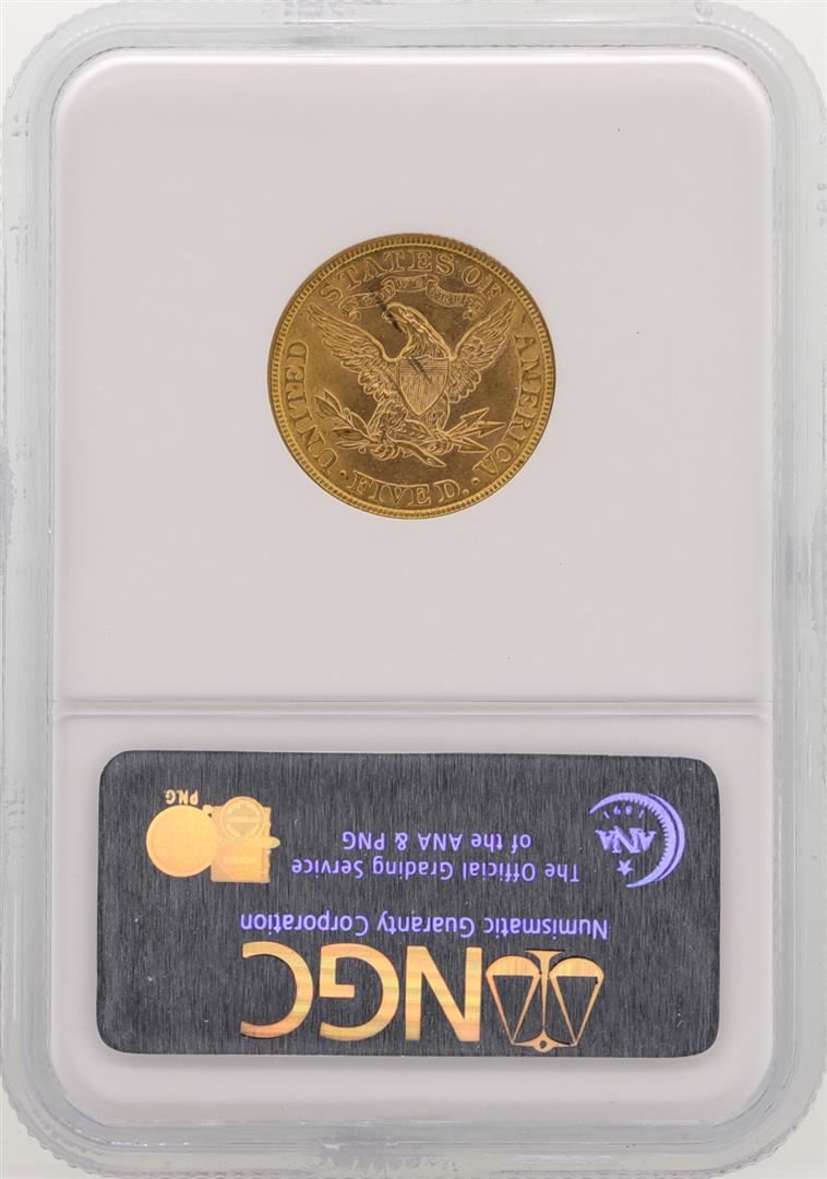 One 1901 $5 Liberty Head Half Eagle Gold Coin NGC MS61. NGC Certified.