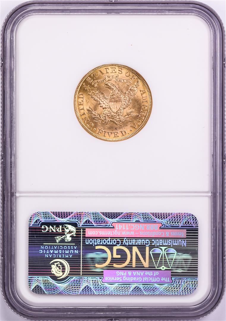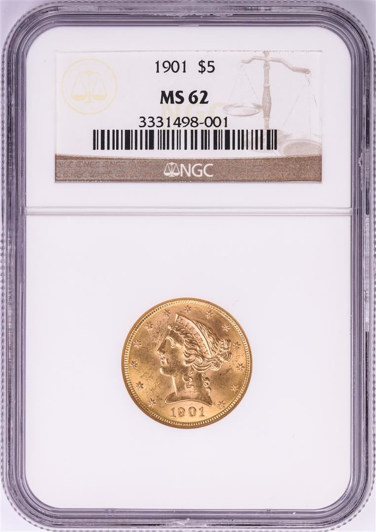 One 1901 $5 Liberty Head Half Eagle Gold Coin NGC MS62. NGC Certified.