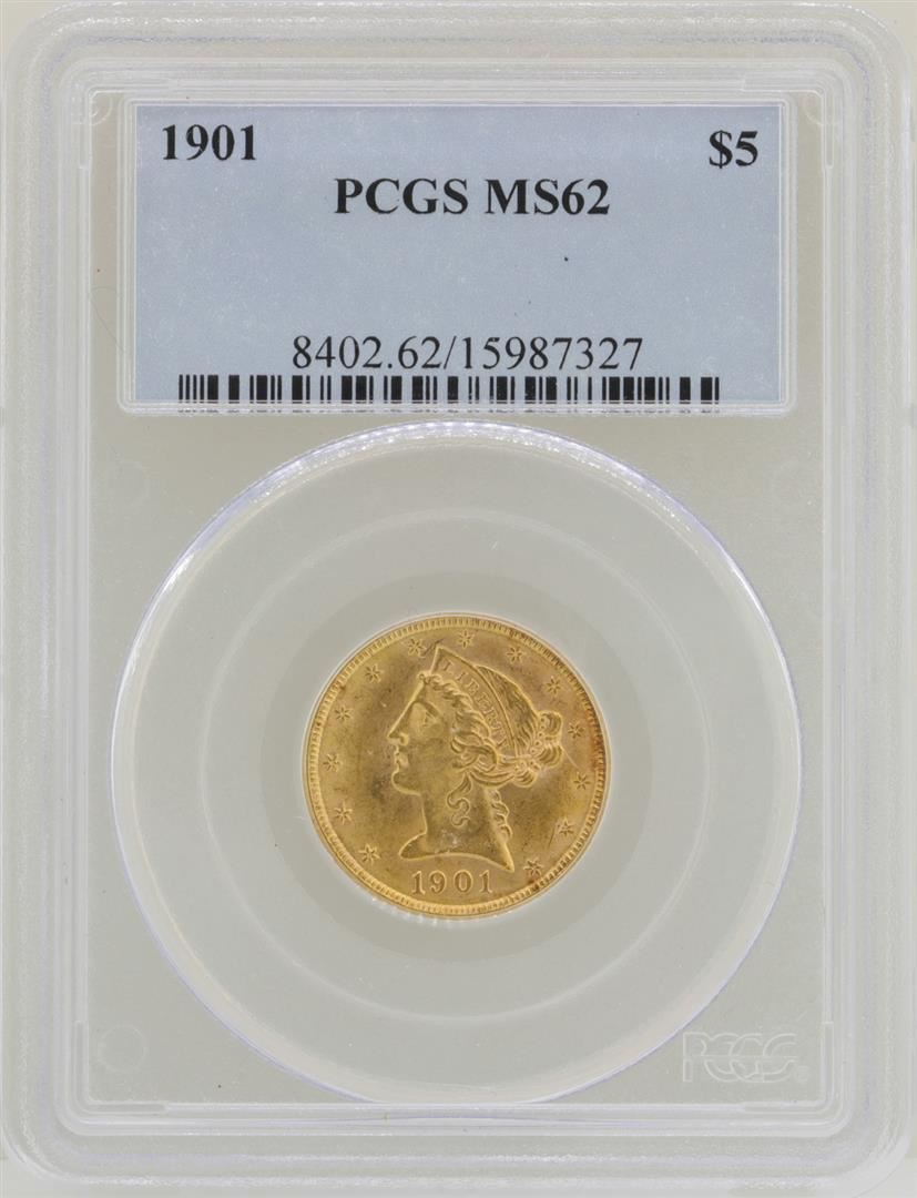 One 1901 $5 Liberty Head Half Eagle Gold Coin PCGS MS62. PCGS Graded.