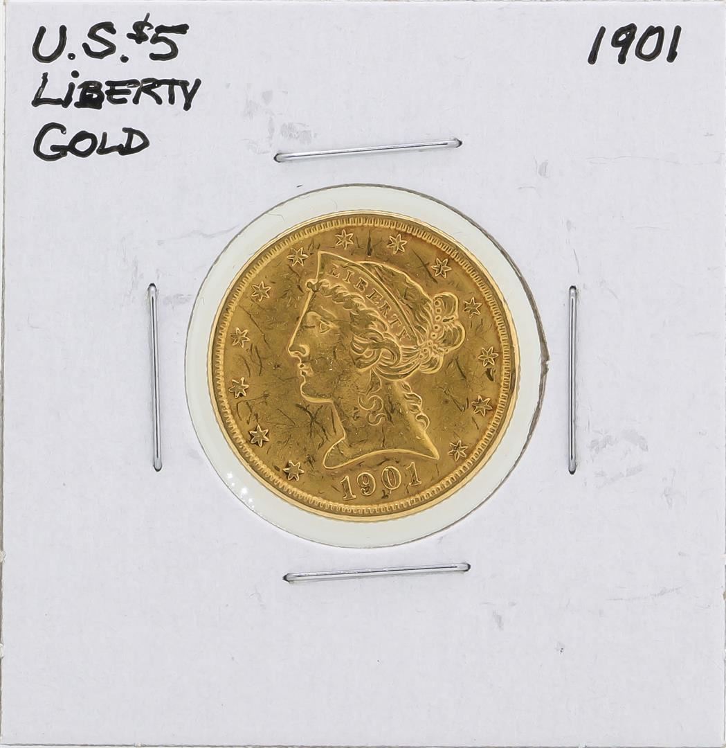 One 1901 $5 Liberty Head Half Eagle Gold Coin.
