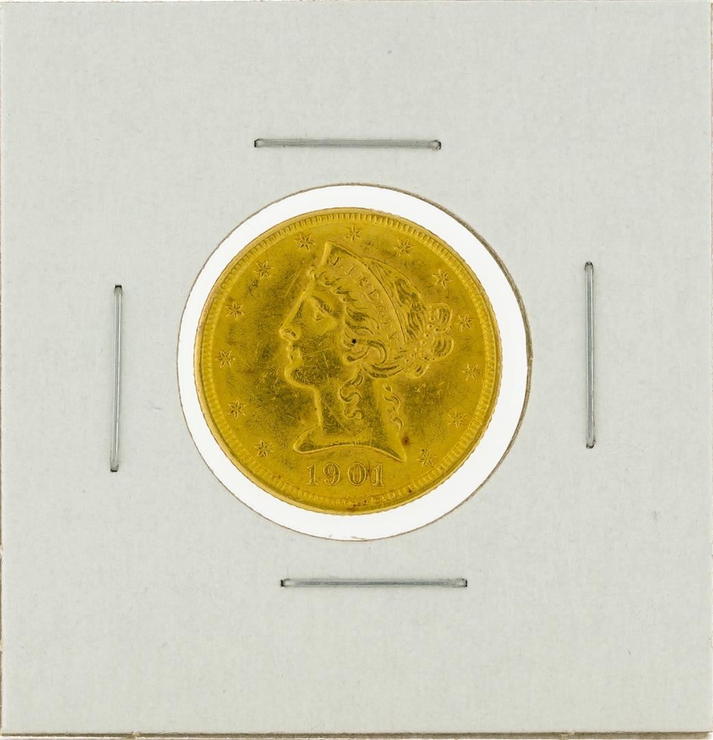 One 1901 $5 Liberty Head Half Eagle Gold Coin.