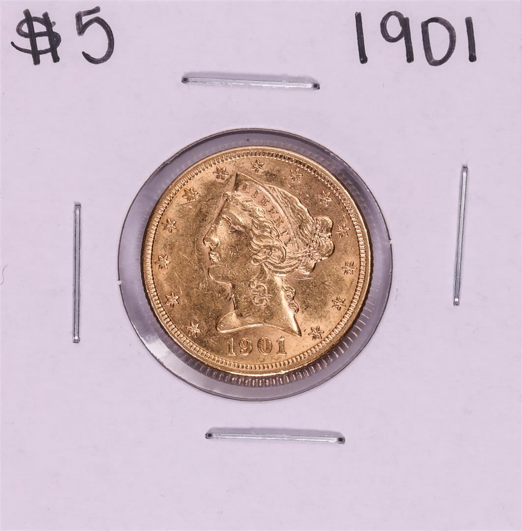 One 1901 $5 Liberty Head Half Eagle Gold Coin.