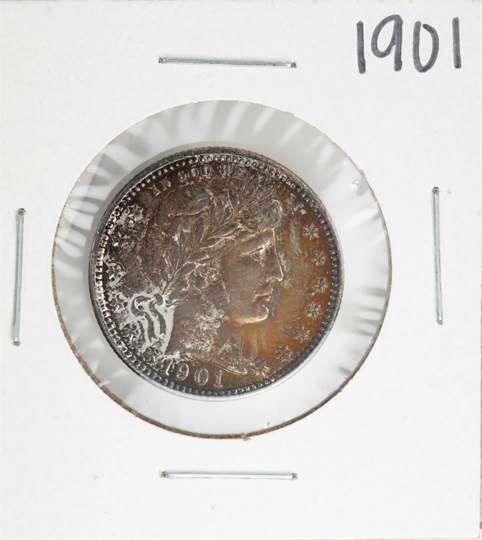 One 1901 Barber Quarter Coin Amazing Toning.