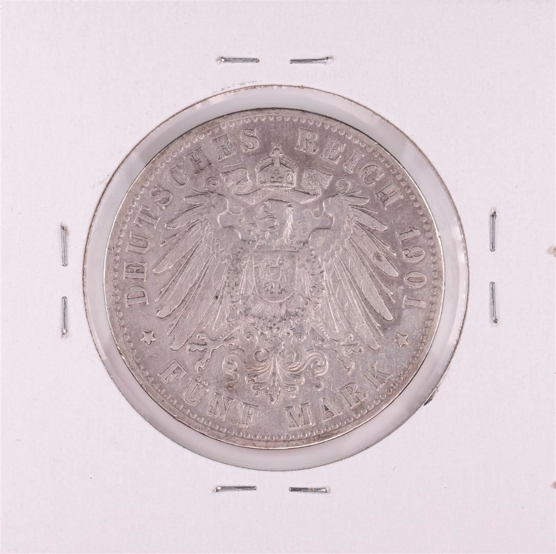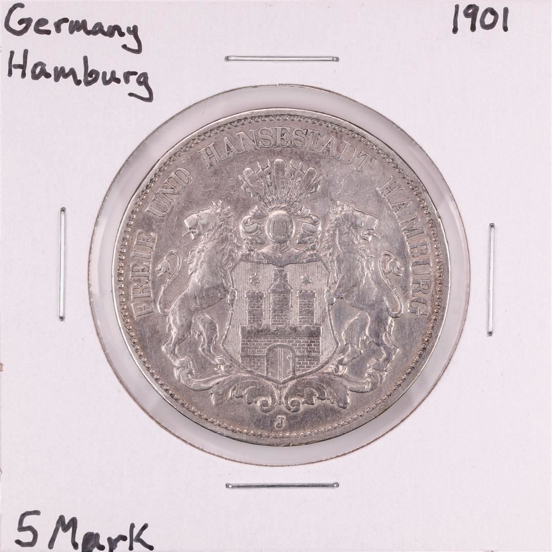 One 1901 Germany Hamburg 5 Mark Silver Coin.