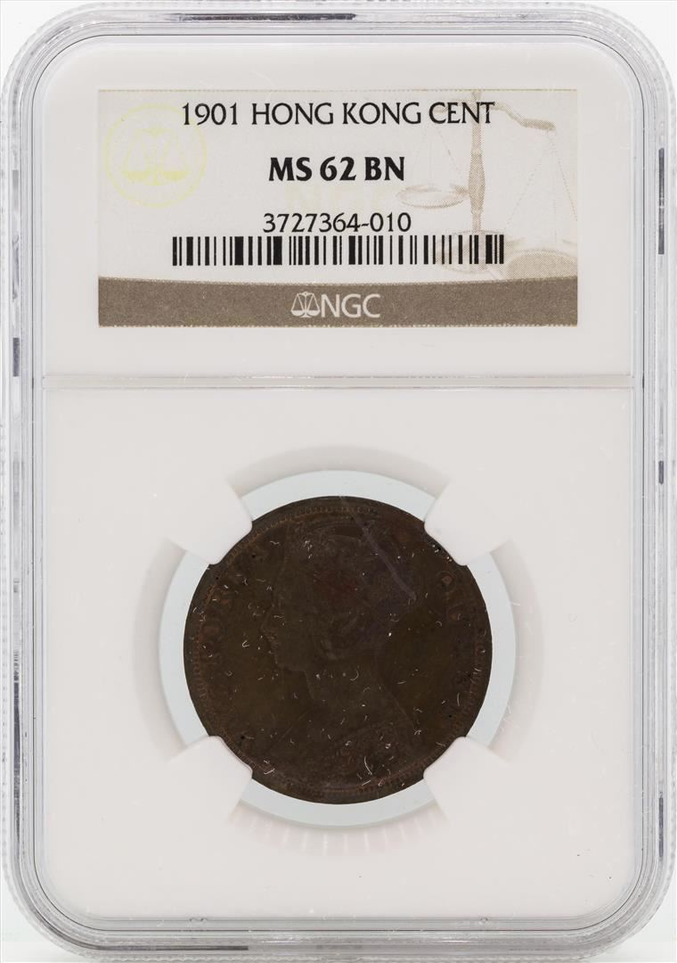 One 1901 Hong Kong Cent Coin NGC MS62BN. NGC Certified.
