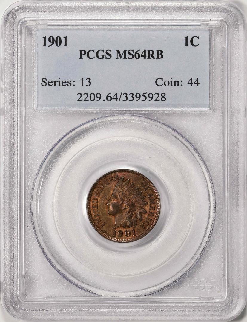 One 1901 Indian Head Cent Coin PCGS MS64RB. PCGS Graded.