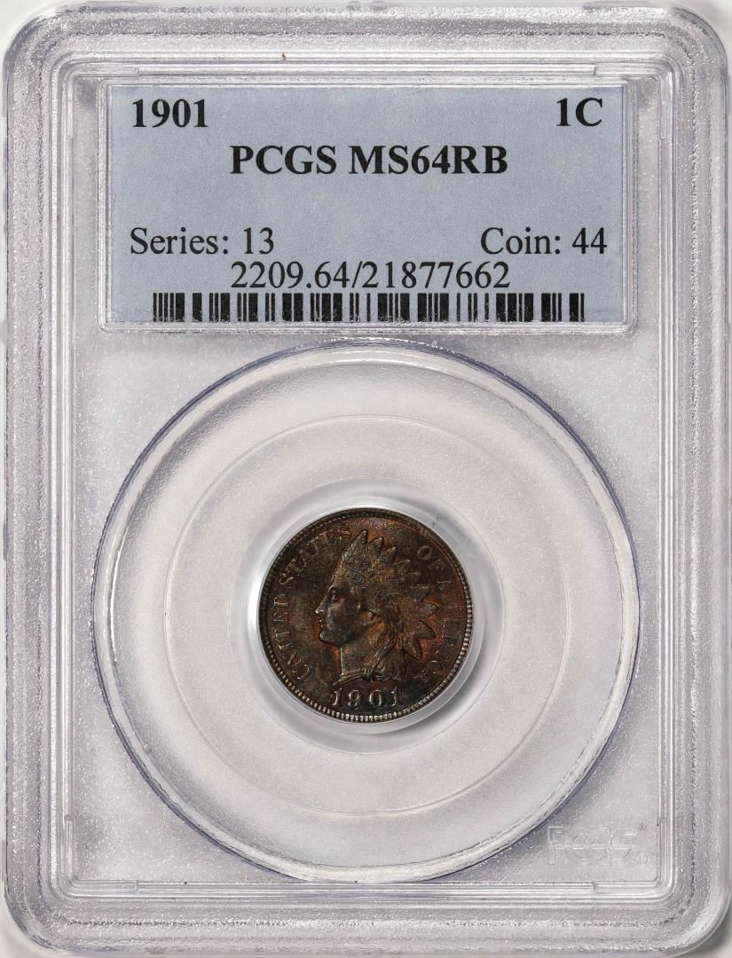 One 1901 Indian Head Cent Coin PCGS MS64RB. PCGS Graded.